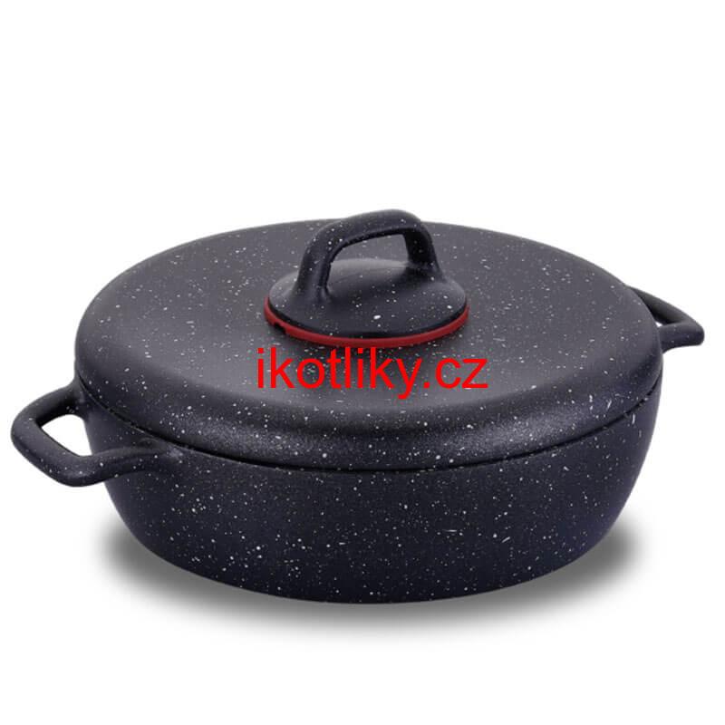 Hrnec na vaření, dušení a pečení se sopečně vypadajícím povlakem PTFE s vynikající nepřilnavostí na vnitřním povrchu.