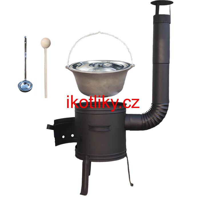 - Litinový kotlík 10 L + nízká žáruvzdorná kotlina 33 cm PLUS 700 + vařečka a naběračka
