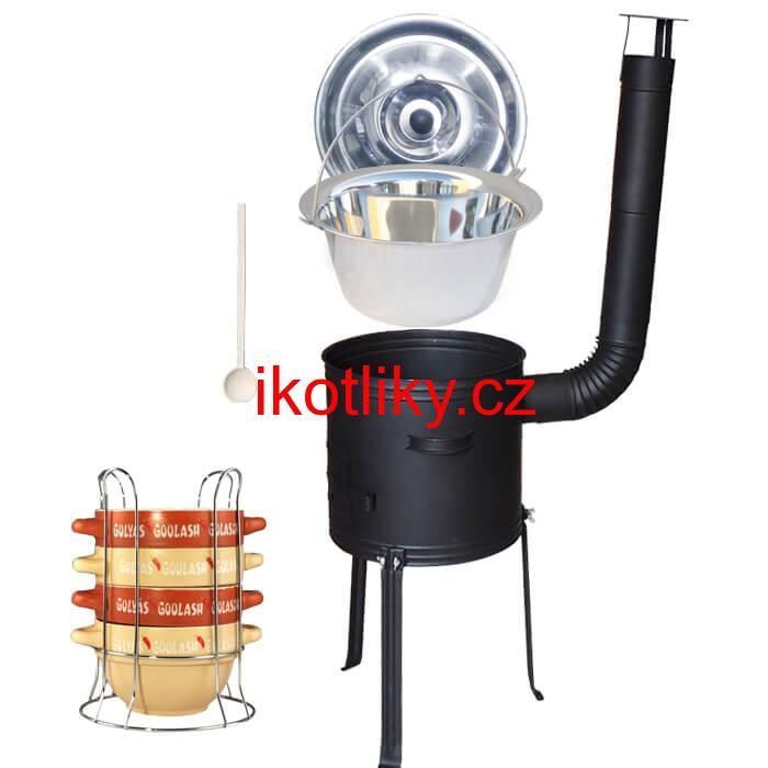 Kotlíková souprava na vaření guláše a jiných pochutin v zahradě, v přírodě pro rodiny, různé společenské akce a posezení při dobrém gulášu.