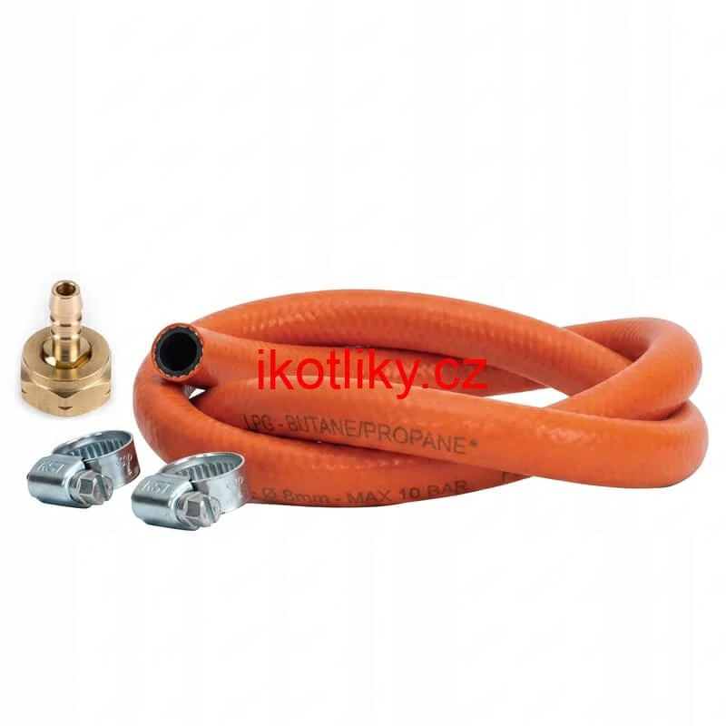 - Plynová hadice 2,5 m + 2 spony + levá matice (20 bar)