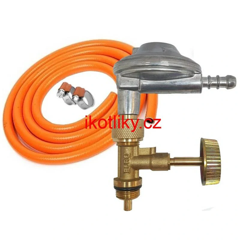 - Regulátor tlaku plynu pro 2 kg PB láhev + hadice a ventil