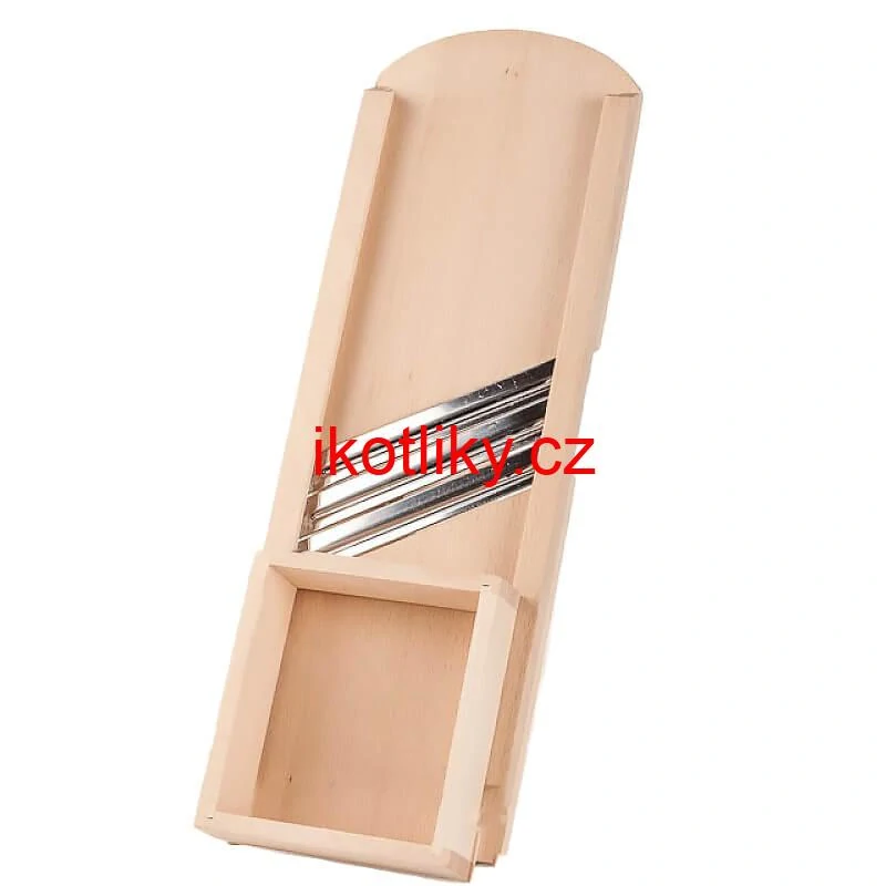 Tento poctivý dřevěný kráječ s praktickým posuvným vozíkem je ideální pomocník pro krájení velkého množství zelí. Tři mimořádně ostré čepele zajistí rovnoměrné a jemné plátky bez námahy.